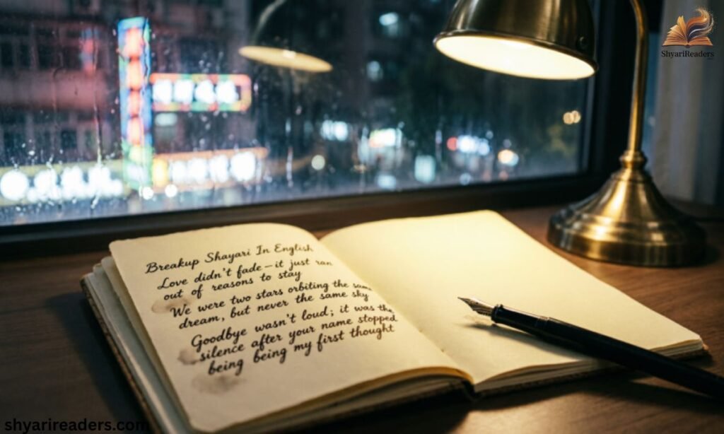 Breakup Shayari in English beautifully expresses the pain of a broken heart, lost love, and emotional memories that still linger. It reflects deep feelings of sadness, separation, and unspoken emotions in a simple yet powerful way. These lines help people connect with their inner emotions and heal through words. Every shayari captures the essence of love, heartbreak, and emotional recovery.